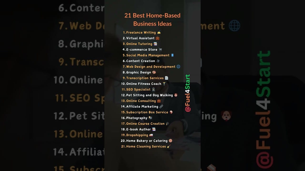 21 Best Home-Based Business Ideas Freelance Writing ✍️ Virtual Assistant 💼 Online Tutoring 📚 E-commerce Store 🛒 Social Media Management 📱 Content Creation 🎥 Web Design and Development 🌐 Graphic Design 🎨 Transcription Services 📄 Online Fitness Coach 🏋️♂️ SEO…