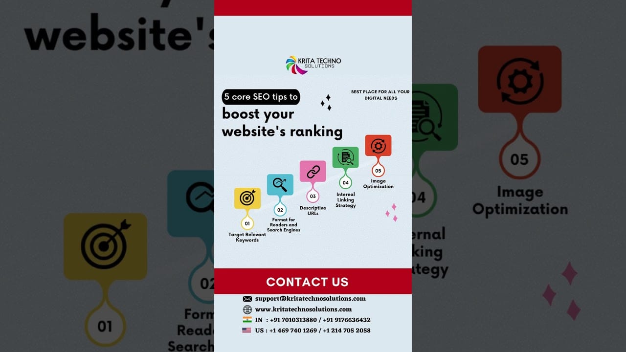 Unlock Success: 5 Core SEO Tips for Skyrocketing Your Website Ranking!🚀💻 👉We are the Best in Website development, SEO, Digital Marketing, Customized CRM for Business, Mobile apps, Google ads, FB, and Insta ads optimization Contact us today: Phone IN: +91…